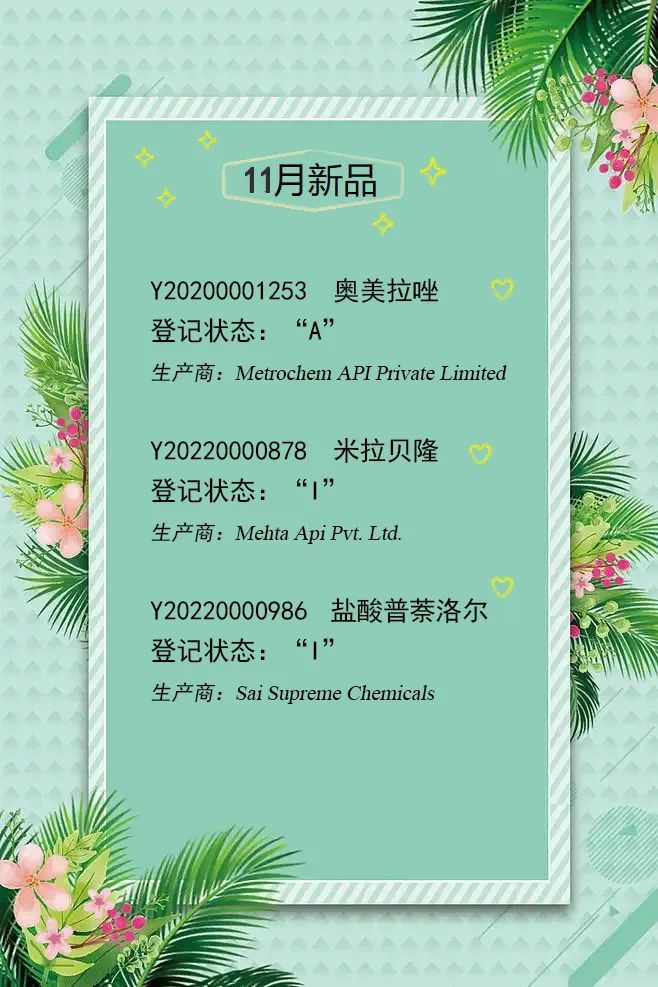 以下为新增 原料药明细: